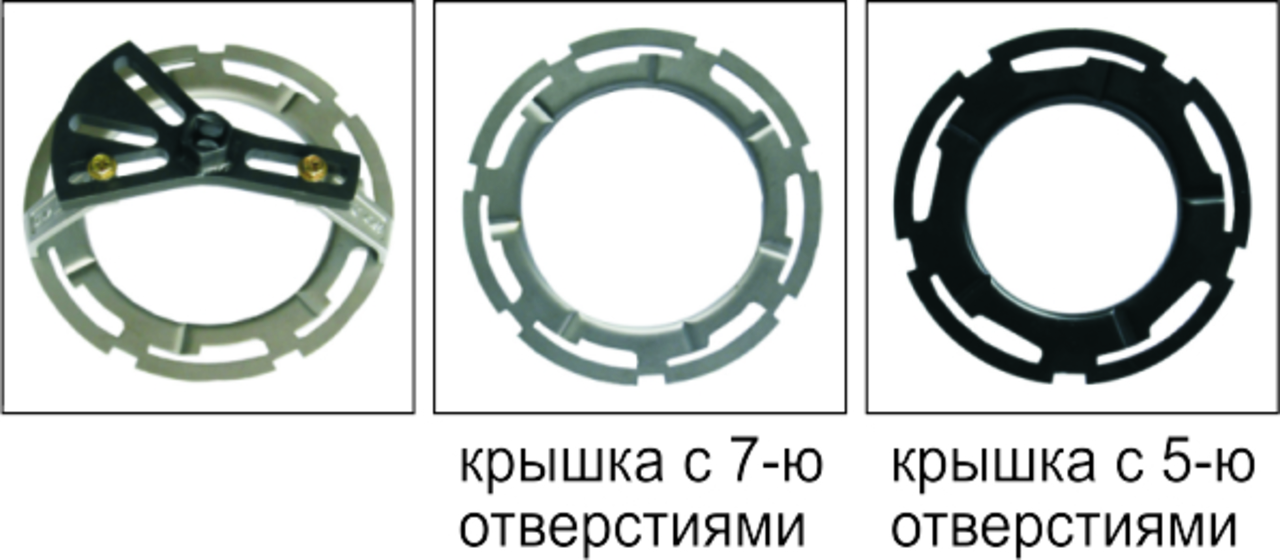 Специальная запатентованная конструкция позволяет использовать инструмент для всех типов крышек топливных насосов с четным количеством отверстий (4, 6), а также с 5-ю и 7-ю отверстиями.