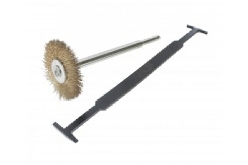Размеры рукояти 120х6 мм, диаметр щетки - 50 мм. Применяется для очистки загрязненной поверхности тормозных цилиндров.