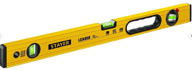 Уровень STAYER Leader 600 мм строительный фрезерованный 3466-060_z01 предназначен для измерения и проверки горизонтального и вертикального положения поверхностей, а также для оценки ровности полов, балок и прогонов. Этот инструмент широко применяется в ремонтных и строительных работах.