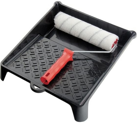 Набор Matrix 84405 включает валик «Грейтекс» размером 250 х 36 мм, с ворсом 12 мм из полиакрила, и кювету размером 330 х 350 мм. Кювета подходит для валиков шириной 250 мм, позволяет набирать и равномерно распределять краску. Шубка из полиакрила подходит для малярных работ на средне-гладких поверхностях с ЛКМ любого типа, в том числе содержащими растворители.