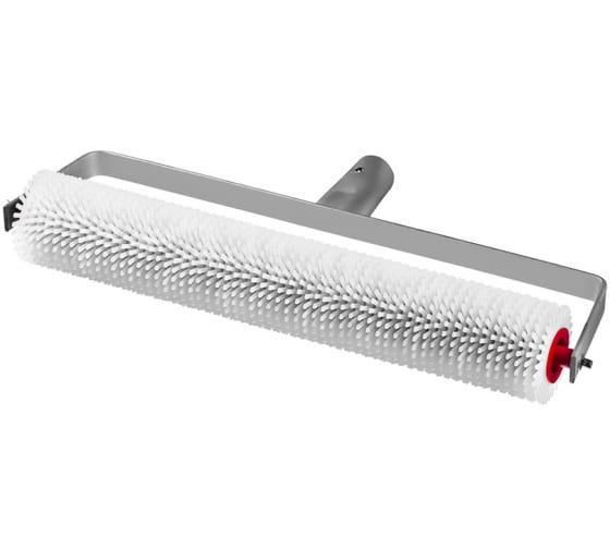 Игольчатый валик для наливных полов на металлической рамке Зубр МАСТЕР 72х400 мм 03952-40 - специальный инструмент для прокатывания напольного покрытия и устранения пузырьков воздуха. Для работы на больших площадях рекомендуется использовать телескопические удлинители. Длина иголок валика - 13 мм.