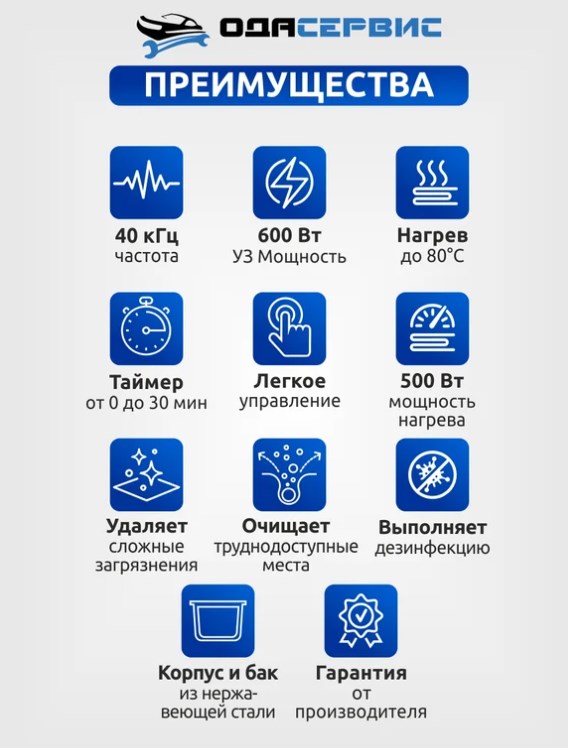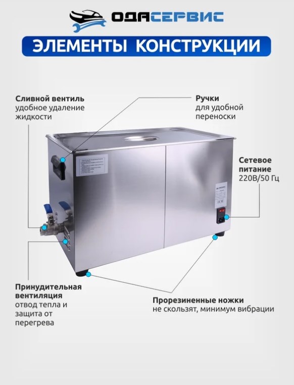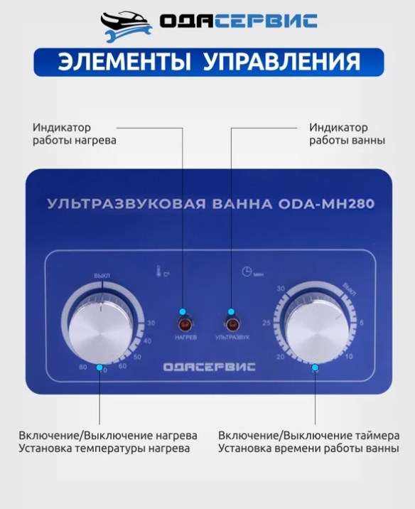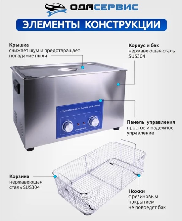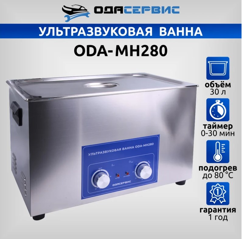 ODA-MH280 представляет собой ультразвуковую ванну с объемом 30 литров и аналоговым управлением. Она оснащена механическим таймером, который может быть установлен на время до 30 минут, а также способна нагреваться до температуры 80°С. Ванна и корзина выполнены из нержавеющей стали SUS304 и работают на частоте ультразвука 40 кГц. Этот аппарат идеально подходит для очистки от масляных, смолистых, жировых и карбоновых загрязнений, а также может использоваться для стерилизации различных предметов.