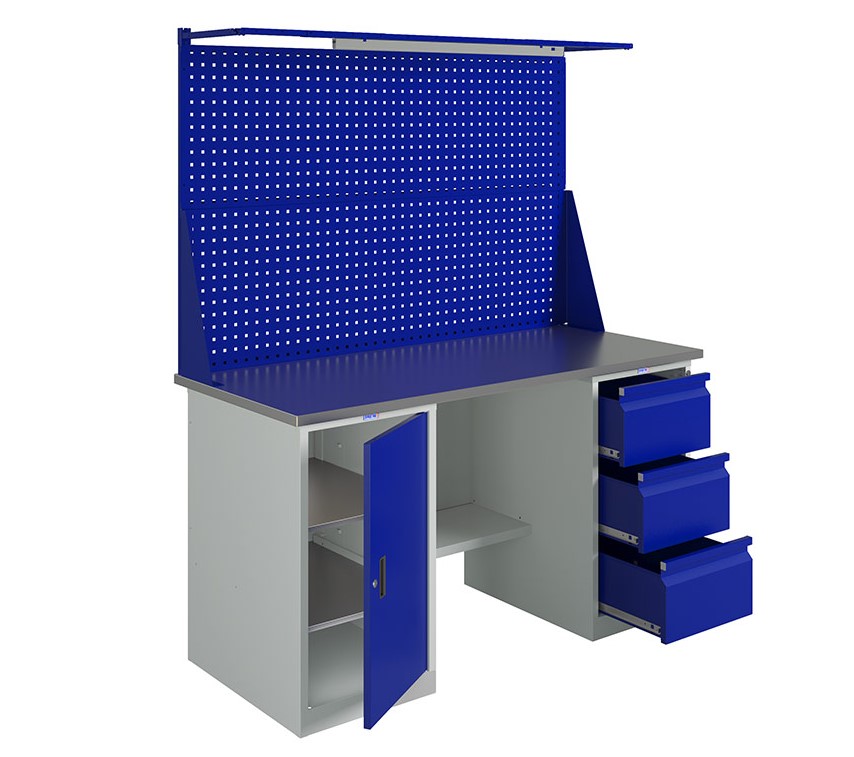 Двухтумбовый верстак, максимальная нагрузка на верстак – 1000 кг.