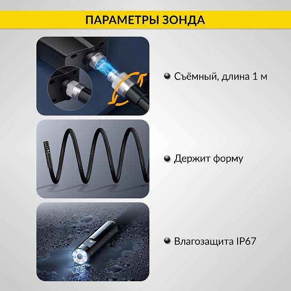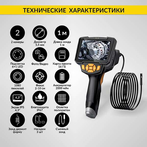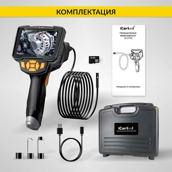 Промышленный видеоэндоскоп iCartool IC-V112B, оснащенный двумя камерами и ярким 4,3-дюймовым IPS экраном обеспечивает четкое изображение и широкий угол обзора, позволяя вам увидеть даже самые труднодоступные места. Зонд диаметром всего 5.5 мм делает устройство идеальным для работы в ограниченных пространствах.