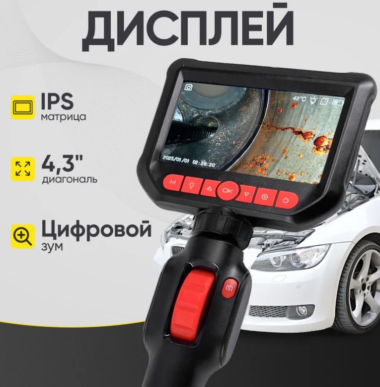 iCartool IC-VC156 — это управляемый видеоэндоскоп с поворотной камерой на 360 градусов и экраном с диагональю 4,3 дюйма.