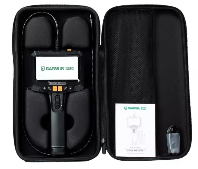 Промышленный видеоэндоскоп GARWIN PRO A70400 предназначен для визуального технического контроля и диагностики. Устройство оснащено поворотным экраном с диагональю 5 дюймов и разрешением 1280х720. Встроенный термодатчик фиксирует температуру и отображает её на дисплее. При достижении пороговых значений температуры срабатывает звуковая сигнализация, предупреждая о возможном перегреве. При температуре 80 градусов Цельсия устройство автоматически отключается.
