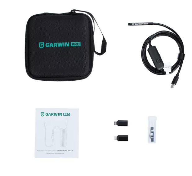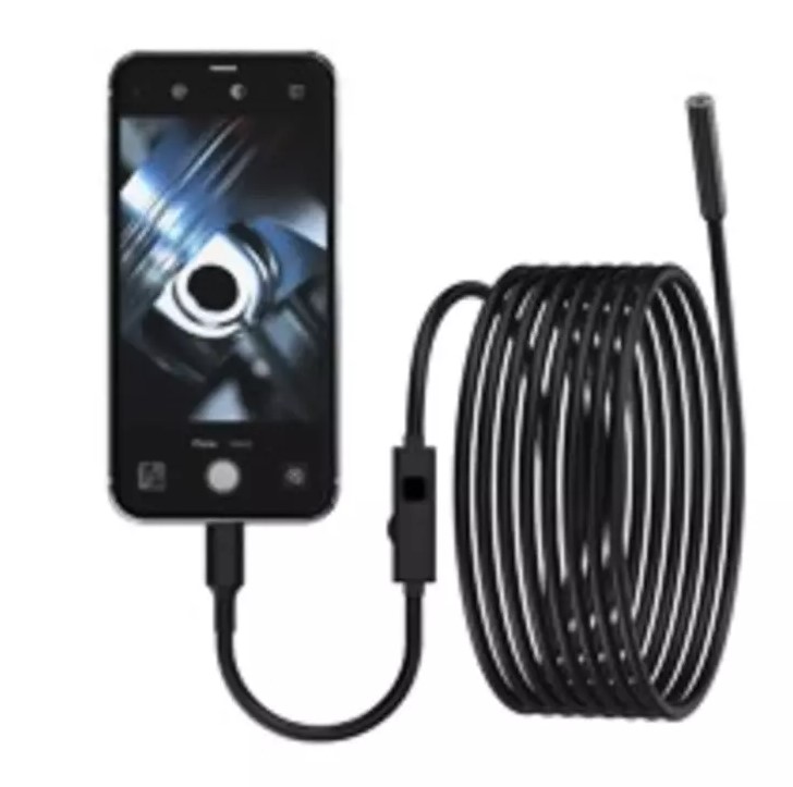 Эндоскоп с гибким зондом длиной 1 метр и камерой диаметром 5,5 мм, оснащённой двумя объективами. Работает в паре со смартфоном на базе OC Android или iOS. На экран смартфона выводится изображение с камеры.