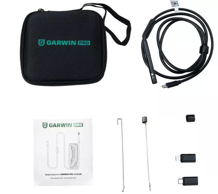 Портативный USB-видеоэндоскоп для визуального технического контроля и диагностирования GARWIN PRO A70330 c двумя камерами. Боковая камера ориентирована на 90 градусов относительно фронтальной. Прибор оснащен разъемом USB Type-C и переходниками Lightning и Micro-USB, совместим со смартфонами и планшетами на базе iOS/Android. Питание осуществляется за счет устройства, к которому подключен эндоскоп, а передача изображения происходит через модуль Wi-Fi, интегрированный в зонд. Для работы с видеоэндоскопом необходмо установить приложение на ваше мобильное устройство. Дополнительные насадки, входящие в комплект, надежно крепятся к зонду при помощи резьбового собединения: крючок для работы, например, с электропроводкой, магнит для извлечения металлических предметов из мест с ограниченным доступом. Предназначен для бытового и профессионального использования в различных сферах.