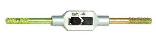 Метчикодержатель оснащен рифлеными рукоятками. Их удобно держать в ладонях и вращать инструмент без больших усилий.