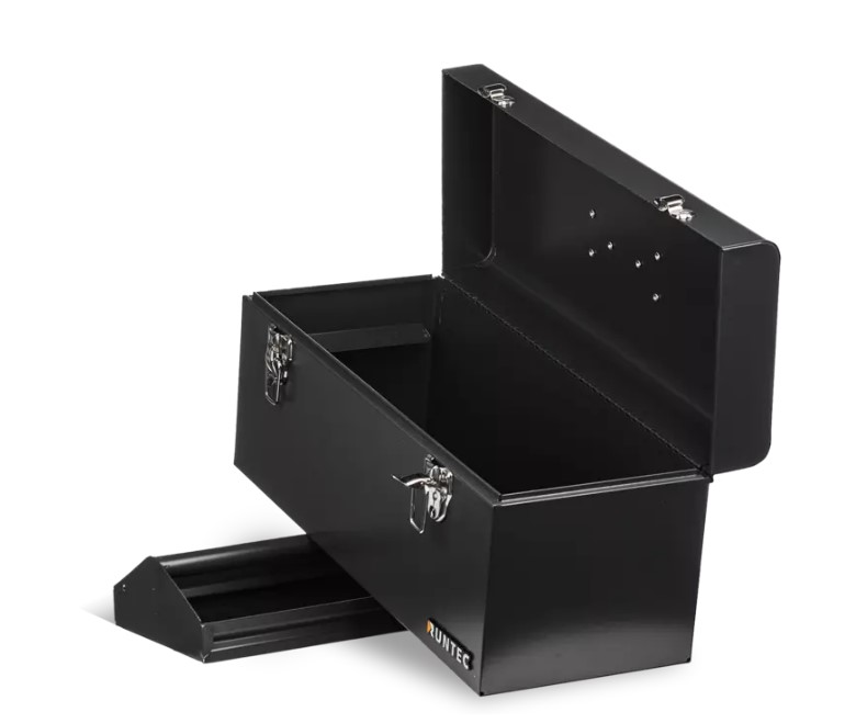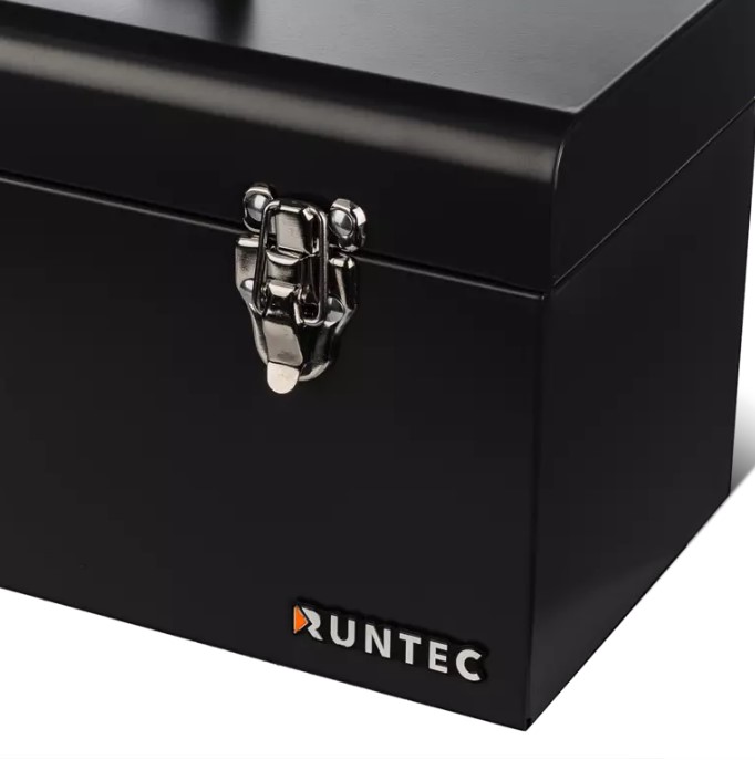В ящике RUNTEC всё оборудование и инструменты содержатся в идеальном состоянии. Корпус ящика изготовлен из прочного металла, который не подвержен коррозии и ржавчине. Для удобства переноски предусмотрена надёжная ручка.