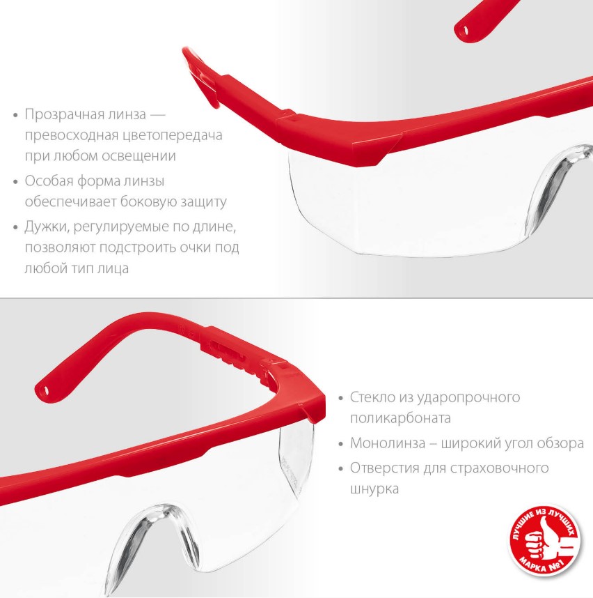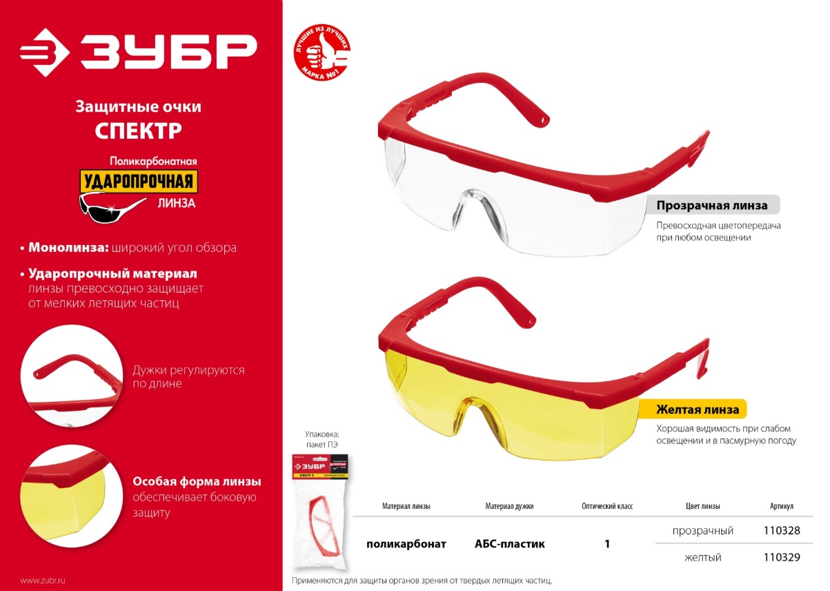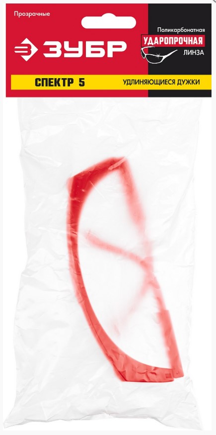 Очки защитные открытого тип прозрачные, моностекло с дополнительной боковой защитой ЗУБР СПЕКТР 5