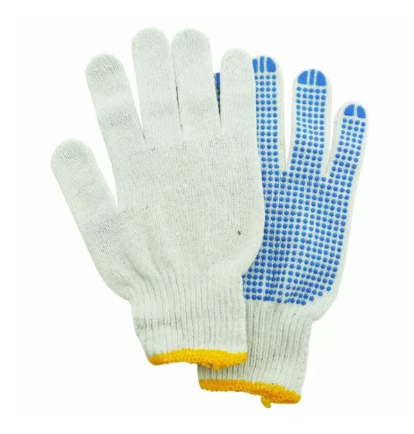Перчатки 5 нитей 10 класс с ПВХ х/б вязанные . Вес пары 52-53 гр. предназначены для защиты рук от загрязнений. Класс вязки: 10 класс Нити: 5 нитей