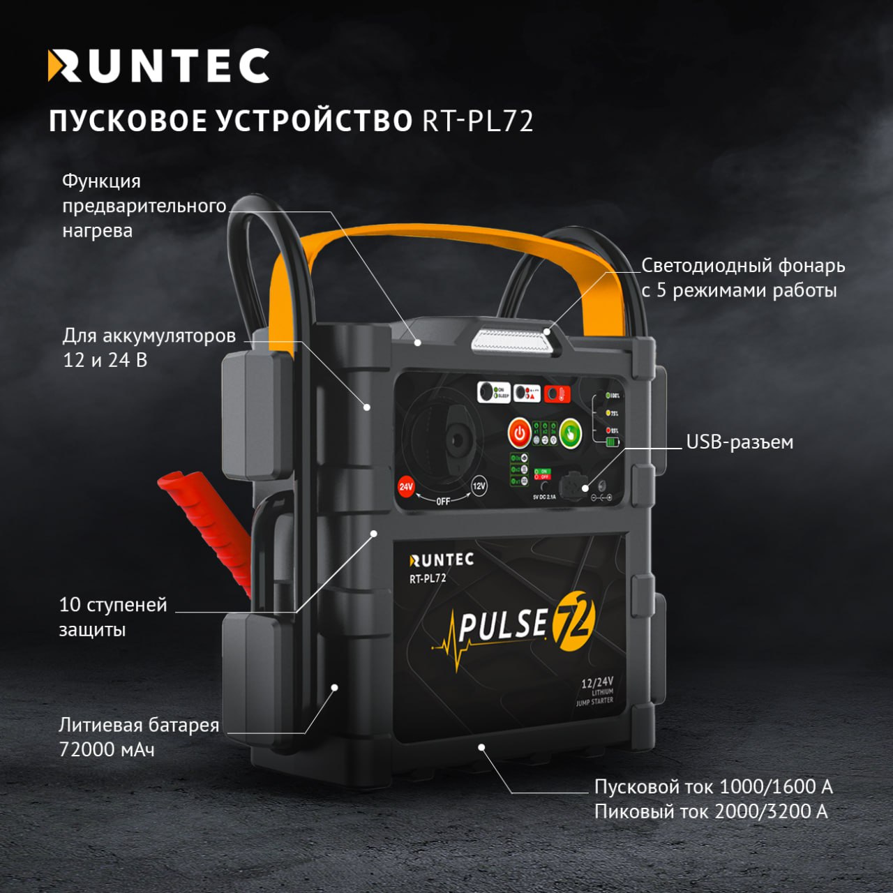Пусковое устройство аккумуляторное 3200/2000 A, 12/24 В, Pulse 72, RUNTEC RT-PL72